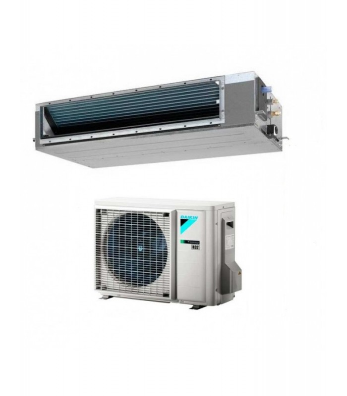 Aire acondicionado por conductos Daikin ADEAS35A de gas R32, Potencia de 3,4 Kw en frío y 4 Kw en calor, equivalente a 3.000 frigorías (Kcal/h). Para estancias de 32 m2 aprox. Etiqueta energética A+/A+. Tecnología inverter. Unidad interior de solo 245 mm de altura. Mando de control incluido.