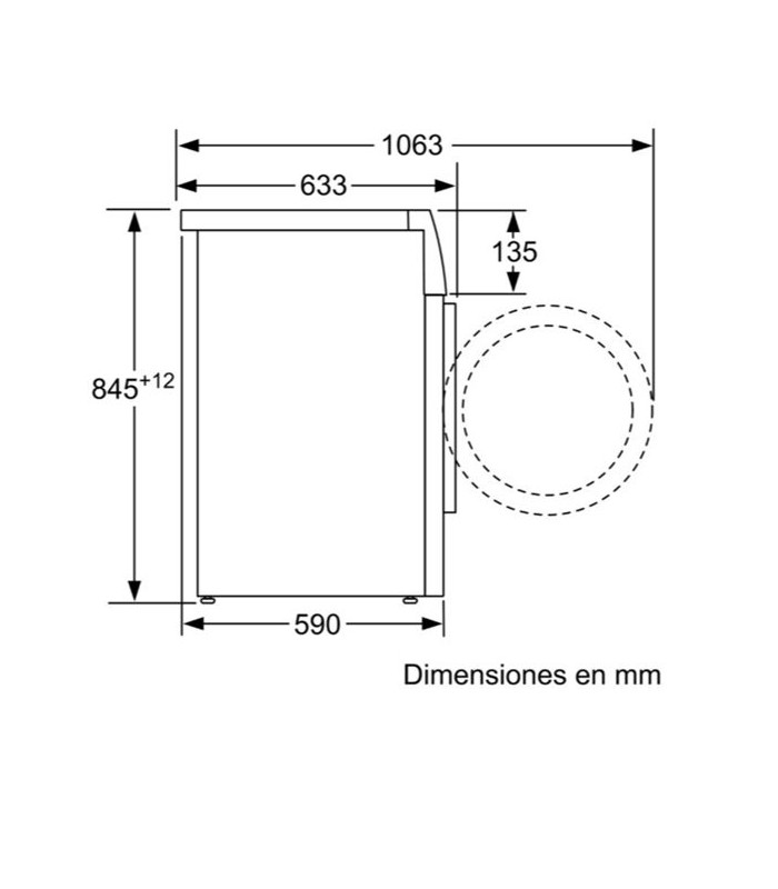 - Dimensiones del aparato: alto x ancho x fondo (sin puerta) 845 x 598 x 590 mm