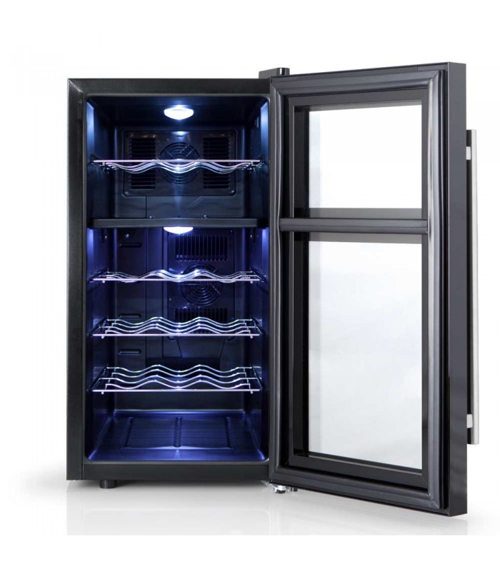 El diseño elegante y sofisticado de esta vinoteca también es otro de sus atractivos, ya que es ideal para colocar en cualquier rincón de la cocina o en la casa, sin romper con la decoración propia del lugar. Para ello, cuenta con puerta de cristal con asa de acero inoxidable y una luz interna LED, además de un sofisticado display digital.